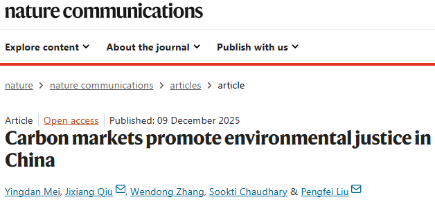 近日,yl7703永利梅应丹副教授以第一作者身份在国际综合顶级期刊《Nature Communications》发表题为“Carbon markets promote environmental justice in China”的学术论文。