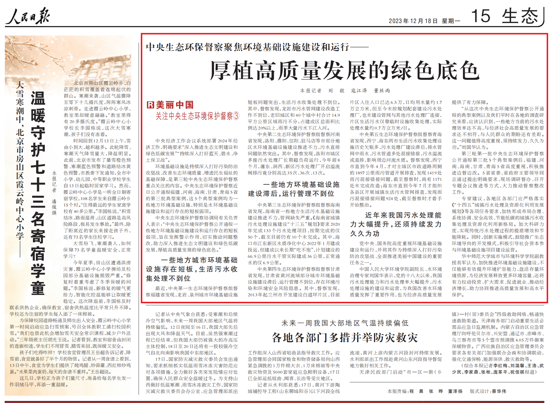 热点聚焦 | 刘国华:中央生态环保督察聚焦环境基础设施建设和运行—— 厚植高质量发展的绿色底色