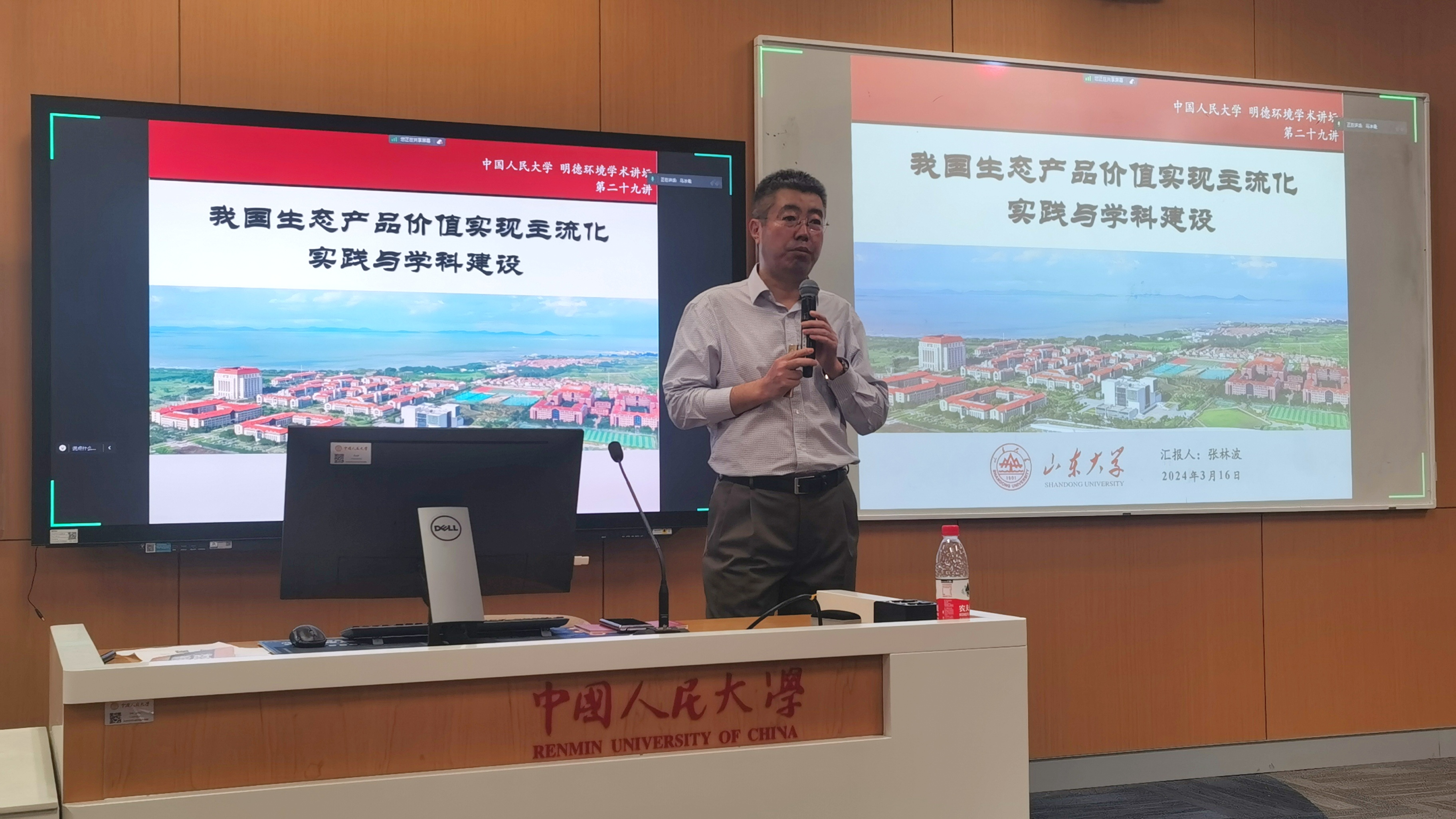 2024年3月16日,yl7703永利主办的“明德环境学术讲坛”第二十九讲以线上线下结合的方式成功举办。本次讲坛邀请山东老员工态产品价值实现研究中心教授、黄河生态产品价值实现理论与机制研究实验室主任张林波教授作了题为“我国生态产品价值实现主流化实践与团队建设”的学术报告。yl7703永利经理庞军教授首先致辞,代表公司对张林波教授为公司师生作学术报告表示诚挚感谢,并对参会师生在交流学习过程中能够有所收获提出了殷切期望。会议由yl7703永利昌敦虎副教授主持。