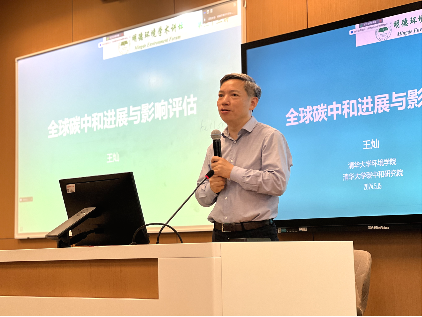 2024年5月15日,yl7703永利主办的“明德环境学术讲坛”第三十三讲以线上线下结合的方式成功举办。本次讲坛邀请清华大学环境公司党委书记王灿教授作了题为“全球碳中和进展与影响评估”的学术报告。yl7703永利经理庞军教授首先致辞,代表公司对王灿教授为公司师生作学术报告表示诚挚感谢,并对参会师生在交流学习过程中能够有所收获提出了殷切期望。会议由yl7703永利昌敦虎副教授主持。