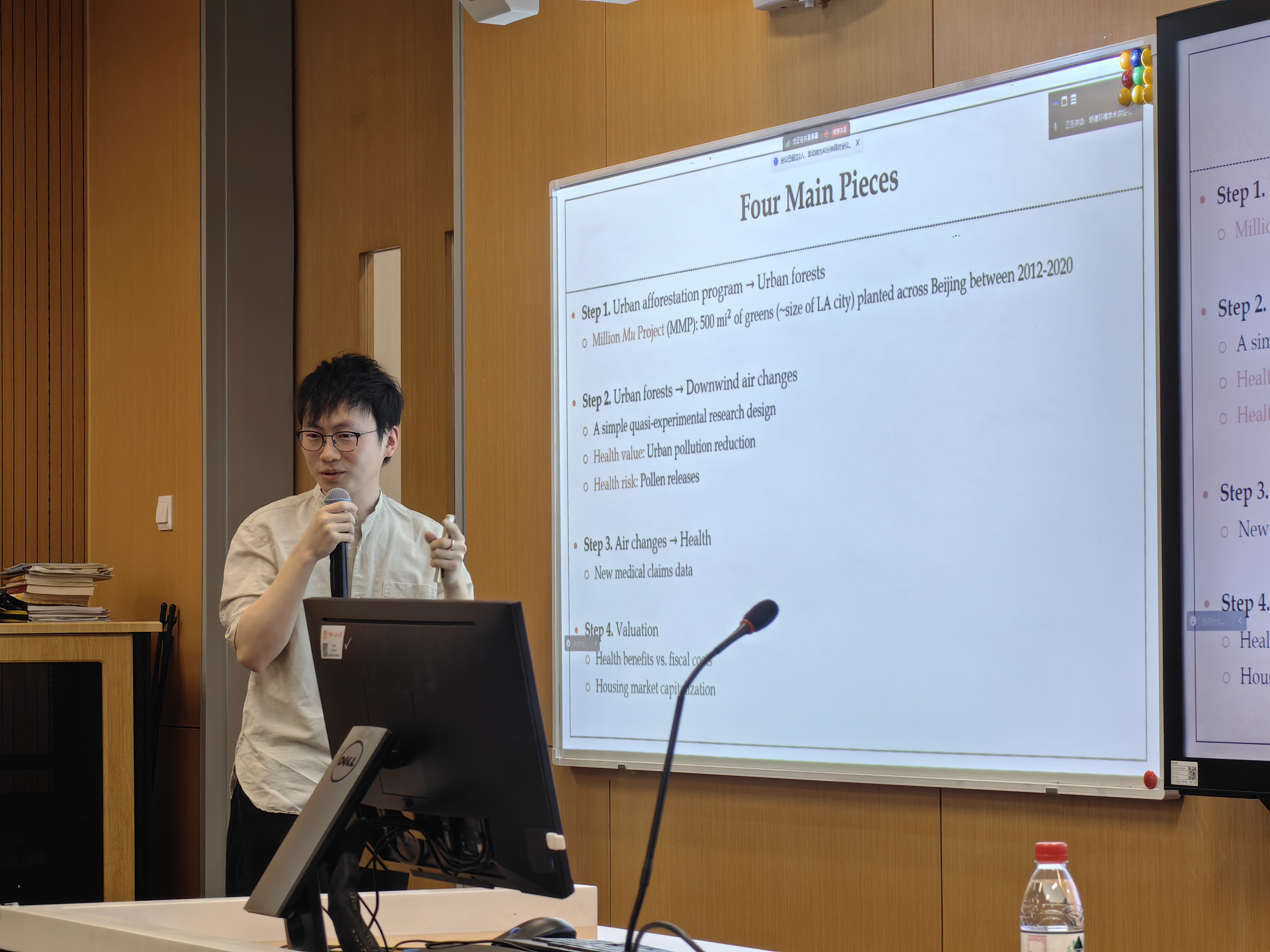 邹咏辰助理教授首先对研究背景进行了梳理,他指出全球约25%的城市土地被树冠覆盖,这些城市森林是城市内最广泛的自然资本,能够稀释、分解、吸收和固定大气中的污染物和二氧化碳,具有改善空气质量、调节气候、节约能源、降低噪声、保护野生动物栖息地等功能。尽管自然科学已经提供了有关森林与环境之间相互作用的宝贵见解,但在经济学领域,识别城市森林以及植树造林政策对大气环境和居民健康影响的研究仍较为匮乏,也鲜有研究对该类政策的成本和收益进行准确评估。
