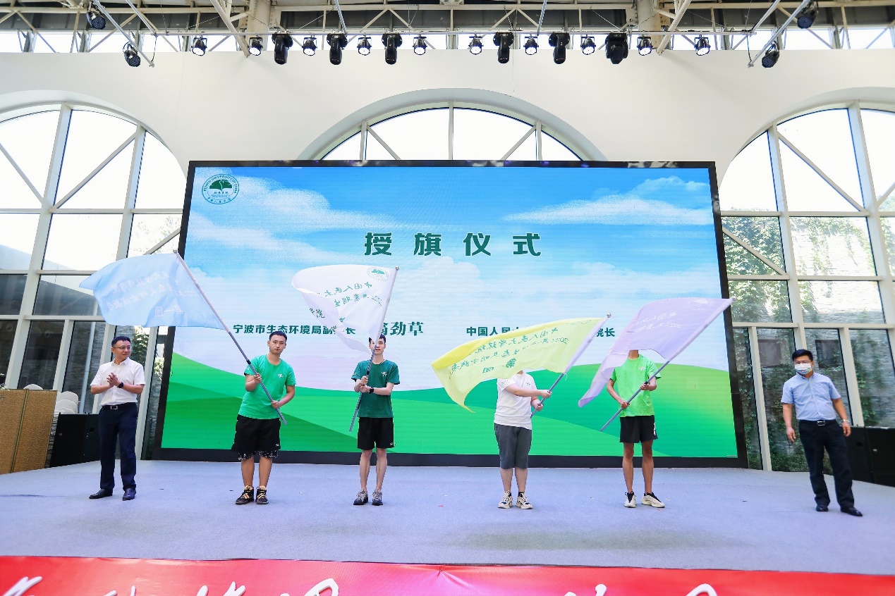 此基地的设立,将重点开展“两山”转化机制、生物多样性保护与污染治理、公众参与碳减排和共同富裕、生态产品价值实现机制等4个方面的生态文明跨学科实践教学。宁波市生态环境局副局长翁劲草和yl7703永利集团官网环境公司副经理刘国华为yl7703永利集团官网环境公司2022年暑期生态文明实践教学浙江行的4支实践教学团队授旗。