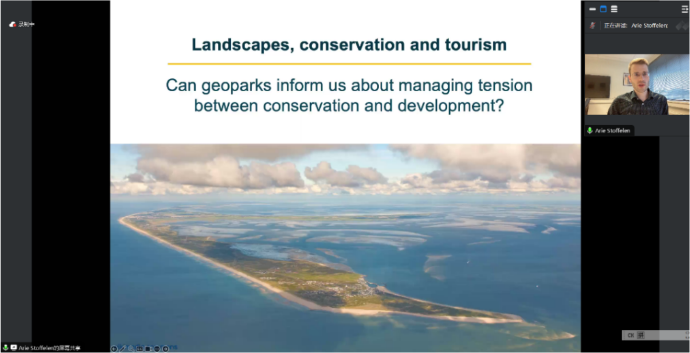 Arie博士首先介绍了可持续发展、社会可持续性、保护和发展的协调与冲突是地质公园保护与发展研究的重要背景。他指出,保护与发展的冲突有多种表现形式,包括人与野生动物的冲突、当地社区的搬离、本土知识的忽视、自然生态的破坏等。而当地社区具有和当地自然生态和谐共生的知识和经验,因此,基于社区的自然资源管理是协调保护与发展,促进遗产地可持续性的重要路径。同时,旅游发展不应被视为冲突的来源,而是加强环境保护和社会经济协调发展的机会,也在地质公园保护和发展过程中发挥了重要作用。