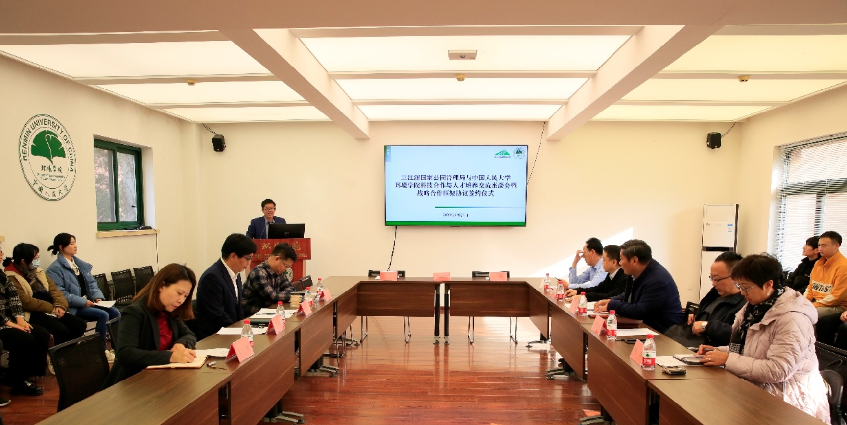 2023年12月5日,三江源国家公园管理局副局长晁世海一行到访环境公司调研座谈并签署战略合作框架协议。公司党委书记贾铁英主持会议,公司党政领导班子、师生代表等参加座谈及签约仪式。
