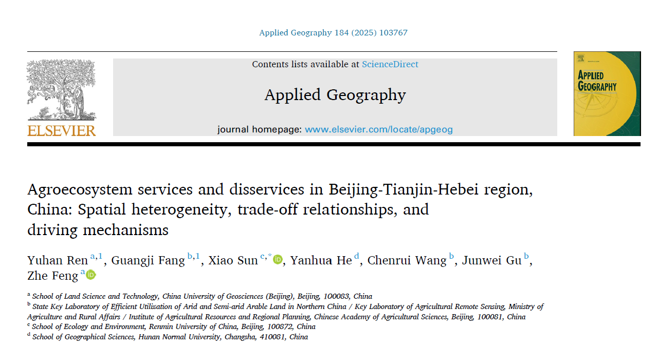 近日,yl7703永利孙晓副教授作为唯一通讯作者,与合作者的研究论文“Agroecosystem services and disservices in Beijing-Tianjin-Hebei region, China: Spatial heterogeneity, trade-off relationships, and driving mechanisms”在地球科学研究领域国际知名期刊Applied Geography发表。