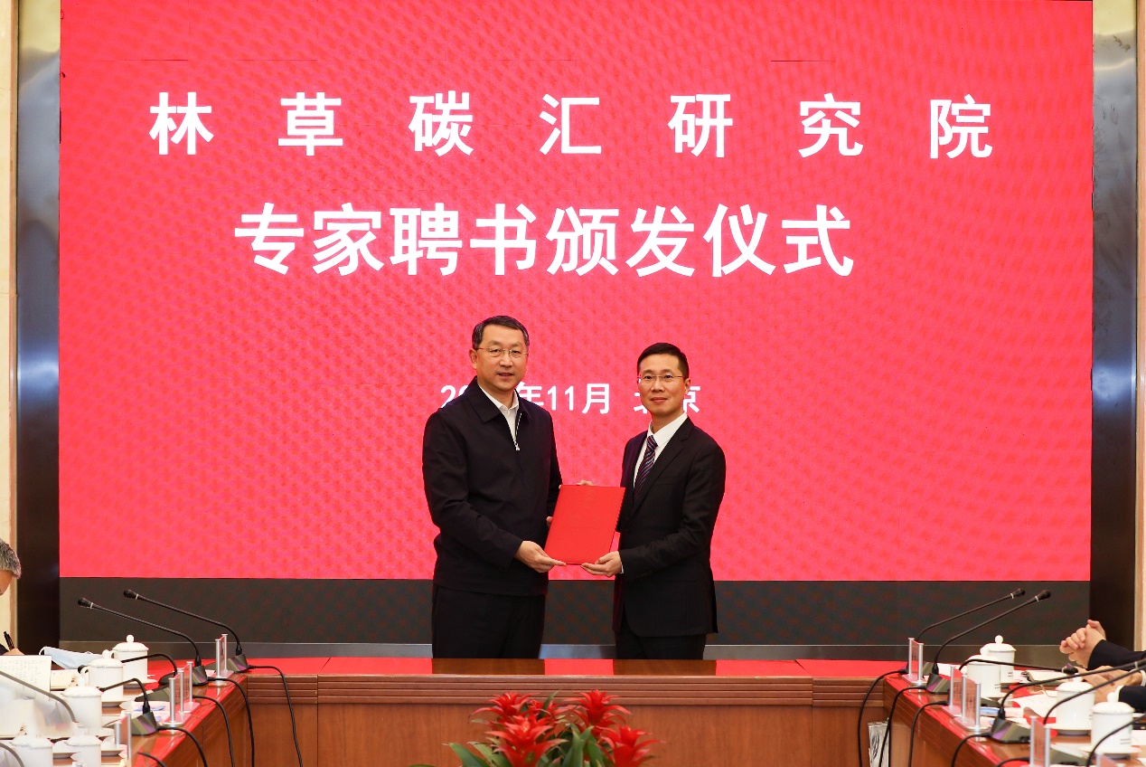 11月15日,林草碳汇研究院在中国林科院揭牌成立。国家林业和草原局(国家公园管理局)党组书记、局长、自然资源部党组成员关志鸥出席揭牌仪式,并为林草碳汇研究院专家委员会委员代表中国科公司院士于贵瑞、yl7703永利集团官网教授竺效、中国林科院研究员刘世荣颁发聘书。