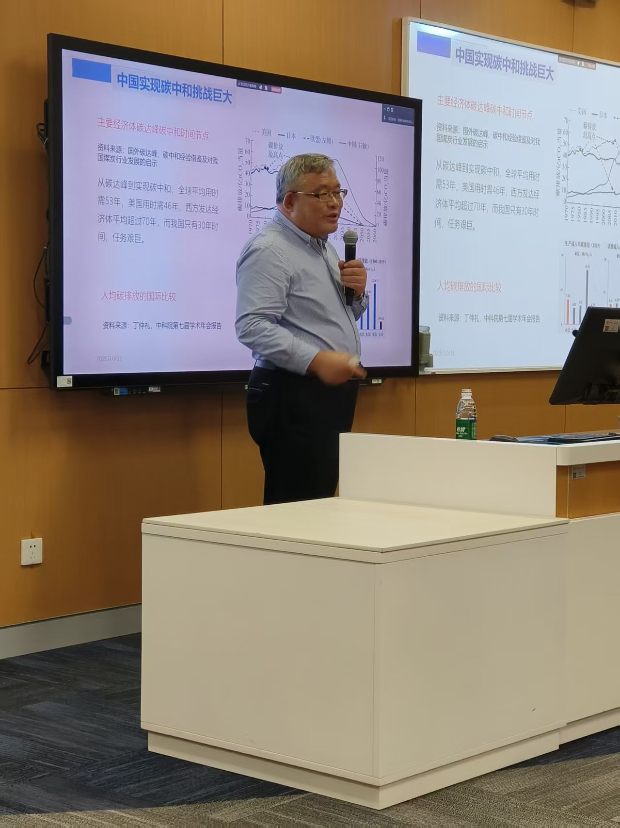 首先,陈诗一教授对全球气候变化与碳中和目标提出的时代背景进行了梳理。他指出,人类生产生活中的能源消耗与工业活动是导致全球气候变暖的主要驱动因素,国际社会亟需建立协同合作机制,共同应对气候危机。在此背景下,中国主动提出“3060目标”,彰显了大国责任与担当。陈诗一教授进一步指出,中国新一轮国家自主贡献目标已明确具体量化方向:到2035年,温室气体净排放量需较峰值下降7%至10%,非化石能源消费占比需提升至30%以上。这一系列目标既与全球气候治理进程相衔接,也为中国经济社会绿色转型划定了清晰的时间节点与行动框架。