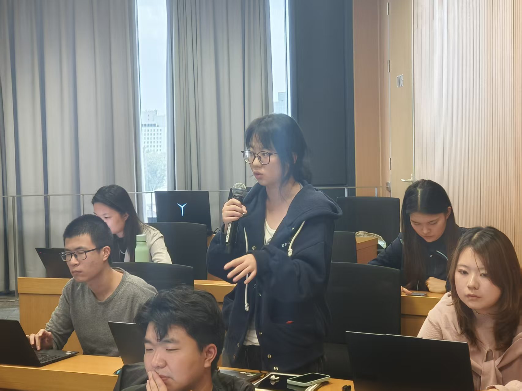 在交流讨论环节,多位师生围绕报告核心议题展开热烈互动。现场提问聚焦“反内卷”与产业低碳竞争的平衡关系、政府与市场在碳减排中的职责划分、气候金融与生物多样性金融的差异及协同路径等关键问题。陈诗一教授结合自身研究经验与国内外实践案例,逐一进行了细致解答,现场气氛活跃,思想碰撞频繁,为参会者带来了多维度的学术启发。