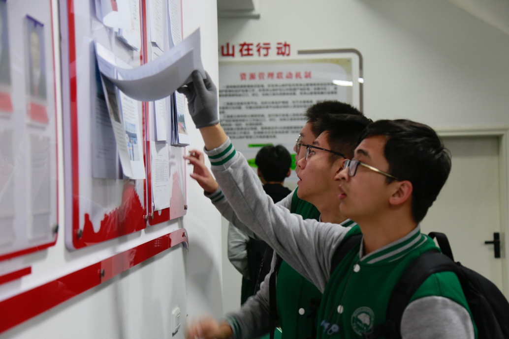 调研团随后参观了梵净山国家级自然保护区管理局太平镇管理总站党支部。同学们认真研读梵净山区域保护管理现状资料,看到了管理总站贯彻落实习近平总书记对梵净山保护管理重要批示精神的决心和实际行动。调研团了解到,梵净山创新建立党建联盟,实现了区域联建、党群联心、保护联抓、资源联享的高效管理机制。通过建设社区共管共建与保护地保护成效评估机制、执法协作机制等,梵净山积极创建生态文明建设先行区,构建了上下联动、齐抓共管、成果共享的工作格局。在参观学习中,调研团对保护区保护管理工作与乡村振兴产业发展深度融合实现路径有了更深入的思考,感受到“人不负青山,青山定不负人”的生动实践。
