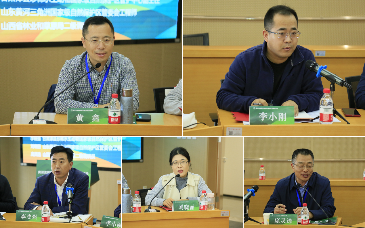 在圆桌讨论环节,山西阳城蟒河猕猴国家级自然保护区管理局副局长黄鑫,甘肃连城国家级自然保护区管理局资源科科长、高级工程师李小刚,甘肃漳县珍稀水生动物国家级自然保护区管护中心副主任李晓强,山东黄河三角洲国家级自然保护区管委会工程师刘晓丽,山西省林业和草原局二级调研员庞灵选围绕“自然保护地发展壁垒问题”进行讨论。嘉宾们充分探讨了保护区林木采伐、禁牧和草畜平衡、社区居民矛盾、保护区确权、生态补偿方案、旅游工作发展等问题,并分享了处理相关问题的经验做法。刘金龙教授指出,社区发展、旅游生计是保护区和社区长期面临的共同问题,保护区应当充分利用数字化信息技术和人工智能助力工作开展。