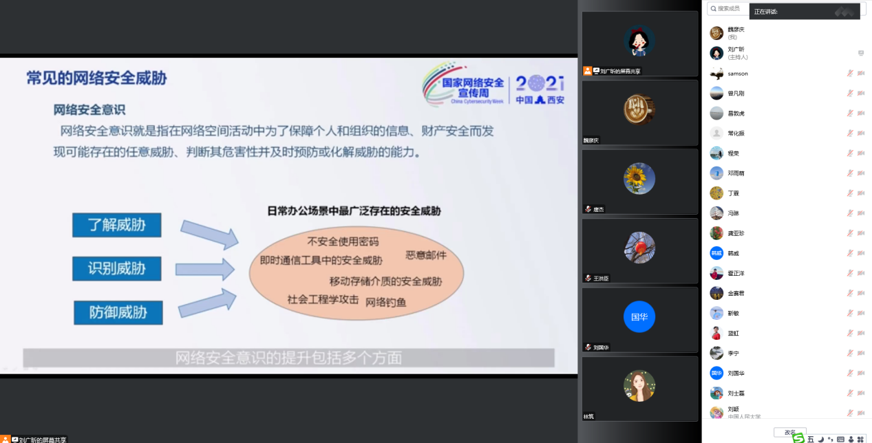 最后,唐杰书记强调全院教职工需提高网络安全意识,防泄密、防诈骗,警惕生活周边的各种小事,做到涉密不上网、上网不涉密,公司将在给全院教职工提供便捷办公方式的同时,继续加强对网络信息安全的防护,营造良好的信息网络安全环境。