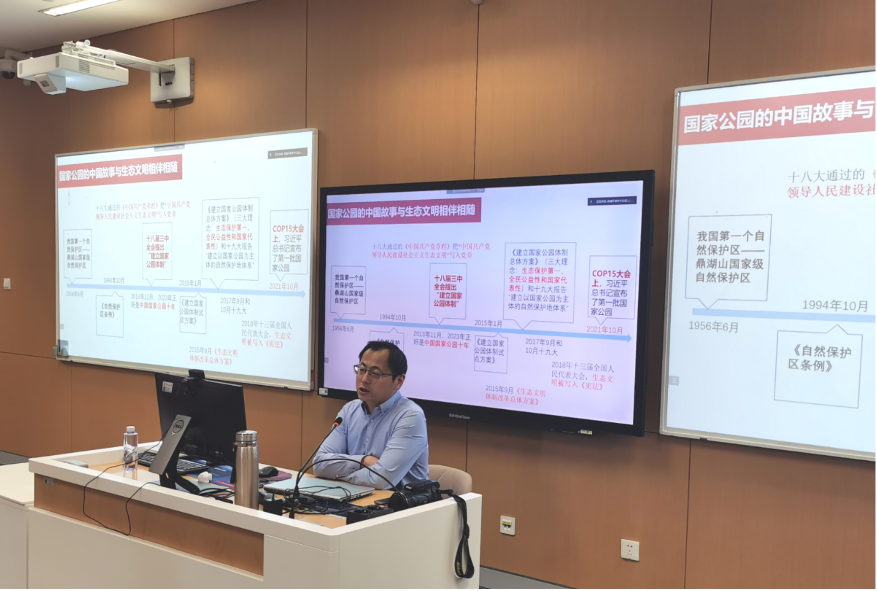 2023年4月15日,yl7703永利集团官网环境公司主办的“明德环境学术讲坛”第十九讲以线上线下结合的方式成功举办。本次讲坛邀请国务院发展研究中心苏杨研究员作了题为“‘推动绿色发展,促进人与自然和谐共生’的国家公园实践及相关学术问题”的学术报告。yl7703永利集团官网环境公司经理庞军教授首先致辞,代表公司对苏杨研究员为公司师生作学术报告表示诚挚感谢,并对参会师生在交流学习过程中能够有所收获提出了殷切期望。会议由yl7703永利集团官网环境公司昌敦虎副教授主持。