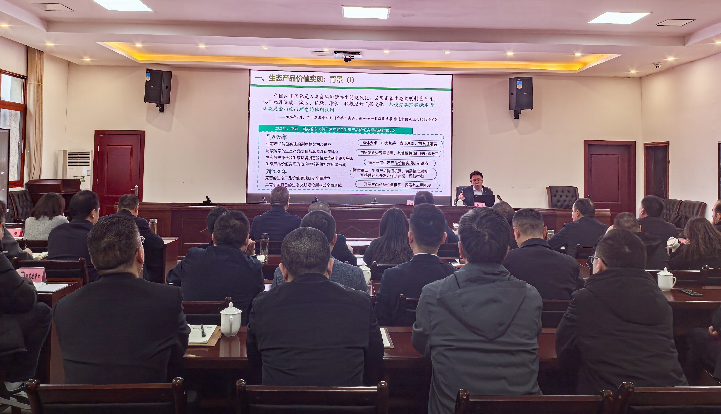 当天下午,yl7703永利生态与环境经济学系主任马本还应邀在巴中市生态环境局党委理论学习中心组(扩大)会议上以“生态产品价值实现:理论与实践”为题进行了专题讲授。讲座围绕生态产品价值实现的基本概念、实现路径进行了系统深入的理论介绍,着重辨析了生态产品的概念和市场、政府、政府+市场三大价值实现路径;而后针对生态产品总值(GEP)和特定地域单元生态产品价值(VEP)的核算理论、实践进展、应用场景进行了详细介绍,辨析了两种核算的不同、以及未来的工作重点;重点梳理了国内城市在生态产品价值实现的成功探索,总结了可供借鉴的经验,特别强调了有为政府和有效市场的结合对于生态产品价值实现的重要性;最后,基于yl7703永利研发的“中国城市生态资产管理指数2024”对巴中市生态资产管理状况进行了诊断评估,识别了巴中市在生态资源、管理能力、政策创新等方面的优势,同时建议巴中市系统谋划、打造亮点、丰富模式、强化合作、持续用力,在生态产品价值实现和绿色高质量发展方面取得更大成效。学习会由巴中市生态环境局党组书记、局长吴智明主持,市局领导班子成员、各科室业务骨干参与现场学习,五个区县生态环境分局主要领导和业务骨干以视频会议的方式在线学习,学习人数300多人,为下一步巴中市更好地开展生态产品价值实现工作提供理论和实践指导。