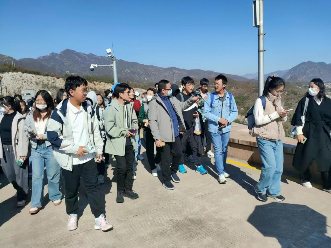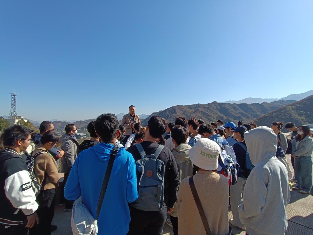 10月22日上午,师生一行抵达斋堂水库。吴健老师结合永定河流域生态环境特征及其保护修复现状,向同学们讲解了北京市国土空间规划总体情况和门头沟区在其中的功能定位,并要求大家按照行前制定的研究计划开展调研,多问多想,努力做到学有所思、行有所得。