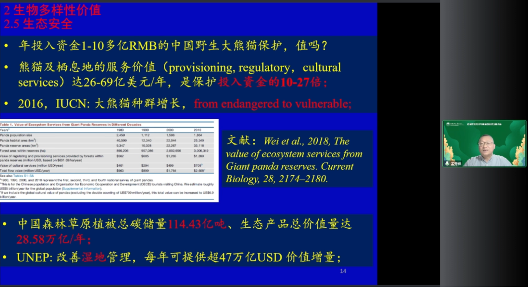 孟秀祥教授发表题为“生物多样性资源管理与高质量绿色发展”的学术报告。孟秀祥教授从生物多样性的基本特征出发,引入生物多样性价值这一概念,指出生物多样性价值在国家粮食安全、生态安全、生物安全等方面的重要性,并就如何加强并实现生物多样性管理提供了具体建议。