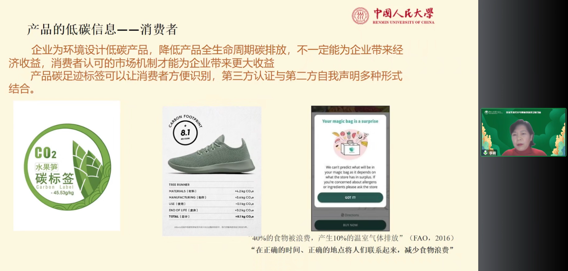 李岩教授发表题为“双碳背景下企业减排的责任与市场激励机制”的学术报告。李岩教授详细梳理了“十一五”以来我国碳排放总量的变化情况及其原因,分析了企业在不同维度的碳减排责任,提出了企业在低碳导向的宏观政策要求下加速转型的具体建议。