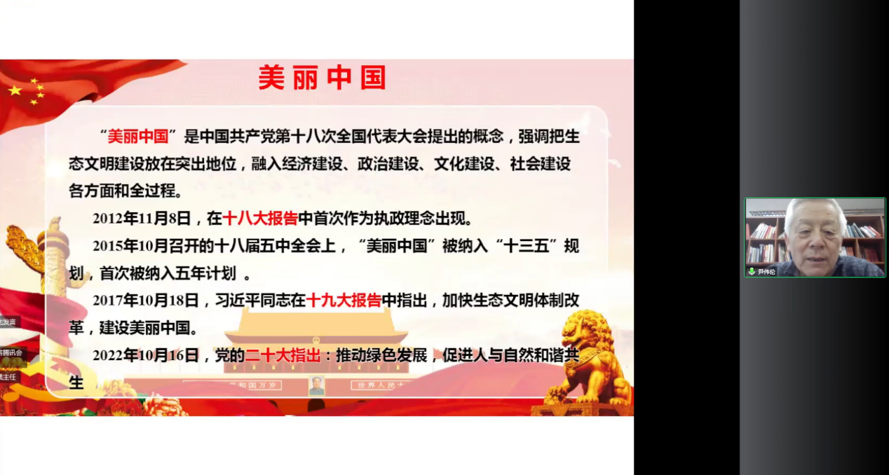尹伟伦院士发表题为“建设美丽中国的生态保护与治理战略思考”的主旨报告。尹伟伦院士指出,美丽中国作为当前中国建设的重大战略部署,不仅体现了我国经济持续健康发展的迫切需要,也是坚持以人为本、实现中国梦的重要内容,是实现中华民族永续发展的必然选择。尹伟伦院士结合二十大报告,总结了我国生态治理战略转变的路径和理念,指出了我国推进生态优先、节约集约、绿色低碳发展等战略目标的方向。最后,以“全国重点生态系统保护和修复重大工程总体规划(2021—2035年)”为例,尹伟伦院士分析了九大生态工程区建设的科学问题和保护措施,探讨了生态工程区环境治理战略的发展思路。