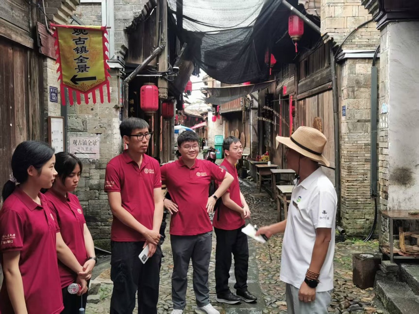 调研团师生在和平古镇、建瓯古城听取讲解,了解文化传承与古城保护现状