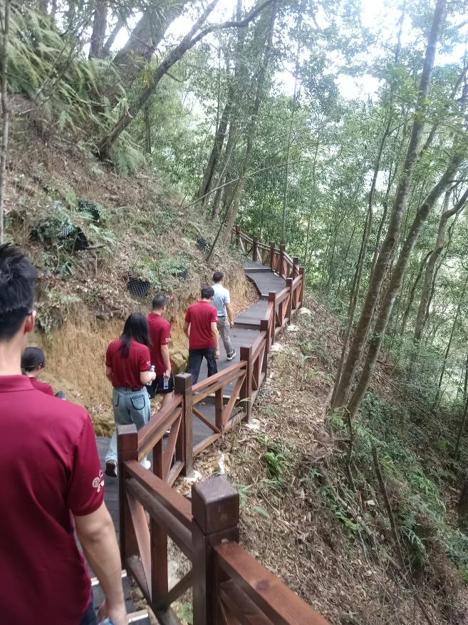 调研团师生漫步于森林步道