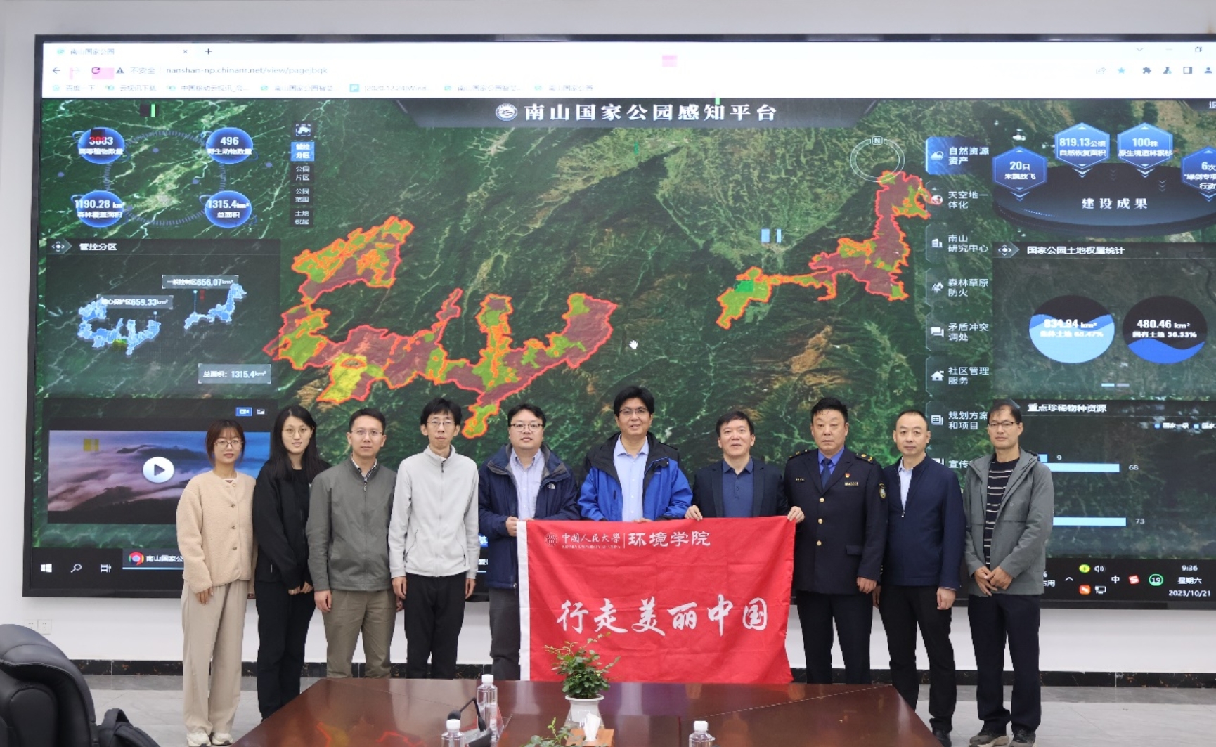 10月21日上午,调研团考察了南山国家公园智慧管理中心暨综合执法支队,全方位了解南山国家公园大数据决策、协同化办公、立体化感知、智慧化发展等机制建设情况以及辖区内执法的日常监督和源头治理情况。