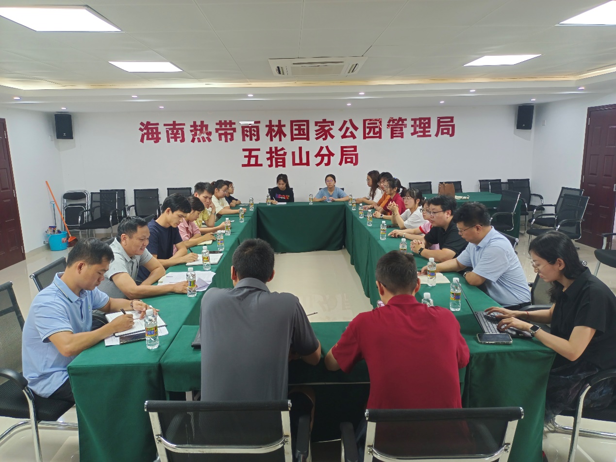7月26日上午,调研团前往海南热带雨林国家公园五指山分局开展座谈会,刘国华副经理首先向与会的五指山分局领导简要介绍了本次调研的背景、意义与要点,调研团师生与分局领导就五指山分区的生态产品摸底情况、国家公园管理模式等进行了交流,对国家公园建设对周边居民的影响有了更为深入的了解。