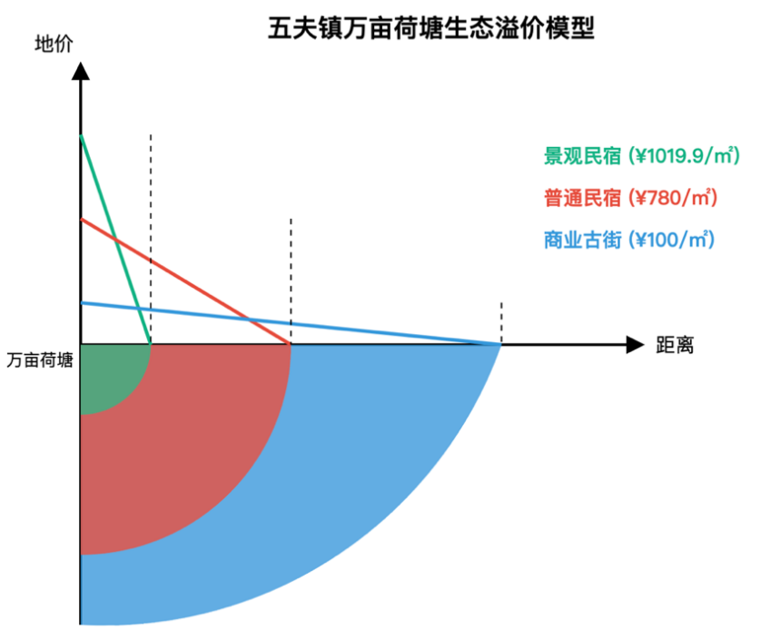 报告二《GEP到VEP:生态文旅项目价值识别与实现—基于五夫镇朱子文化旅游案例》聚焦“生态+文化”复合价值转化,首创“三元分解”核算模型,发现生态景观(万亩荷塘)对土地价值形成了明显的增值效应,呈现出随距离递减的梯度特征,为生态补偿与绿色金融提供科学锚点,为全国生态文化型旅游区价值核算提供“人大范式”。