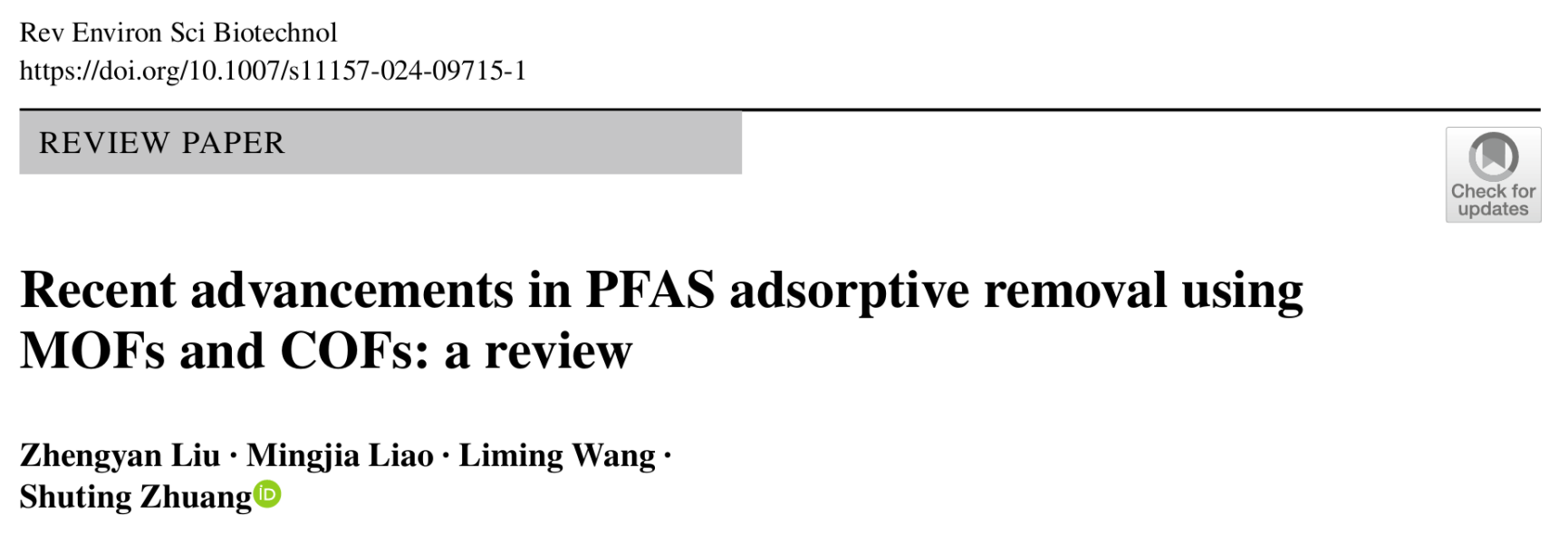 近日,yl7703永利2022级本科实验班员工刘政琰、廖明嘉撰写的综述论文“Recent Advancements in PFAS Adsorptive Removal using MOFs and COFs: a review”在Springer Nature旗下期刊Reviews in Environmental Science and Bio/Technology发表。该文由化学与生命资源公司助理教授庄淑婷老师指导并担任通讯作者。Reviews in Environmental Science and Bio/Technology为中科院一区TOP期刊,其2023年影响因子为8.6。