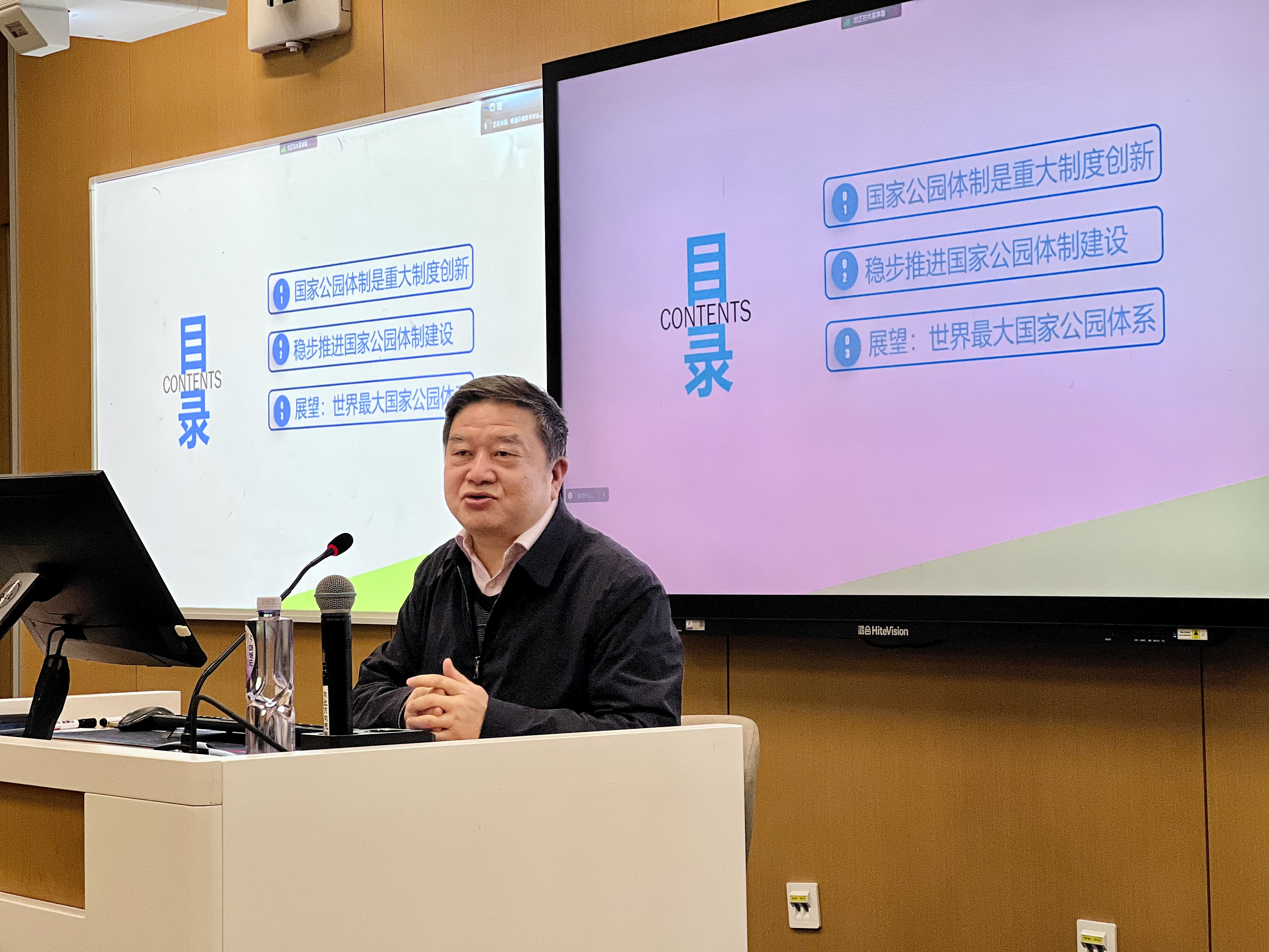 2024年3月30日,yl7703永利主办的“明德环境学术讲坛”第三十讲以线上线下结合的方式成功举办。本次讲坛邀请国家公园研究院唐小平经理作了题为“建设中国特色国家公园体制”的学术报告。yl7703永利经理庞军教授首先致辞,代表公司对唐小平经理为公司师生作学术报告表示诚挚感谢,并对参会师生在交流学习过程中能够有所收获提出了殷切期望。会议由yl7703永利昌敦虎副教授主持。