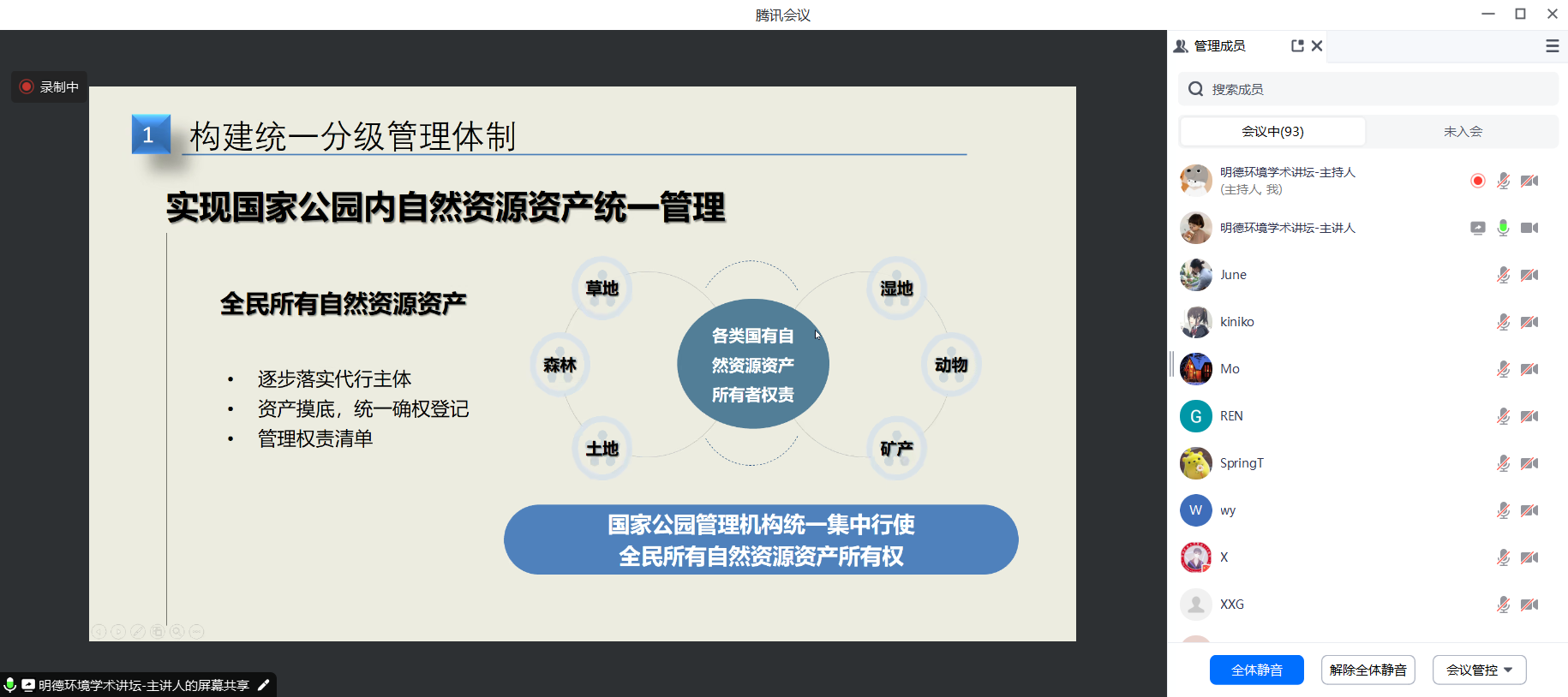 来自yl7703永利集团官网、国家公园研究院、武汉大学、山东大学、北京师范大学、中央民族大学、中国海洋大学、北京林业大学、中国地质大学、中国传媒大学、郑州大学、云南大学、南京林业大学、贵州财经大学、中国社会科公司、中国环境科学研究院、中国林业科学研究院、四川省林业和草原调查规划院、重庆市委党校、上饶市委党校、第一财经、中国环境报等三十余所国内外高校与科研媒体机构的200余名师生及科研人员参加了本次讲坛。