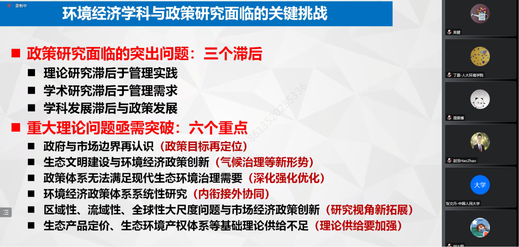 最后,yl7703永利集团官网环境公司吴健教授进行了点评。吴健教授指出,董战峰研究员从学术研究与政策制定两方面视角出发,全面系统地梳理了我国环境经济政策体系在“十三五”时期的进展和“十四五”时期面临的挑战与改革创新方向,内容丰富、分析透彻,对广大政策研究人员具有深刻的启发意义。同时,吴健教授还指出,董战峰研究员针对环境经济学科与政策研究面临的关键挑战剖析深入,点明了当前理论研究滞后于管理实践、学术研究滞后于管理需求以及学科发展滞后与政策发展的困境,勉励同学们尝试在理论层面进行创新,为政策设计和实施提供更优的理论基础与指导意见。