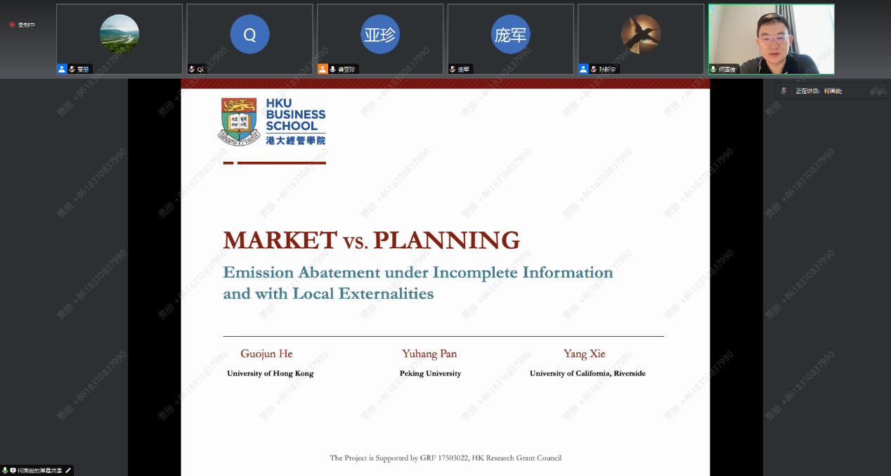 2023年8月26日,yl7703永利集团官网环境公司主办的“明德环境学术讲坛”第二十五讲以线上方式成功举办。本次讲坛邀请香港大学经管公司ESG研究所所长、香港大学中国经济研究所副所长何国俊副教授作了题为“Market vs. Planning: Abating Carbon Emissions under Incomplete Information and with Local Externalities”的学术报告。yl7703永利集团官网环境公司经理庞军教授首先致辞,代表公司对何国俊教授为公司师生作学术报告表示诚挚感谢,并对参会师生在交流学习过程中能够有所收获提出了殷切期望。会议由yl7703永利集团官网环境公司龚亚珍教授主持。