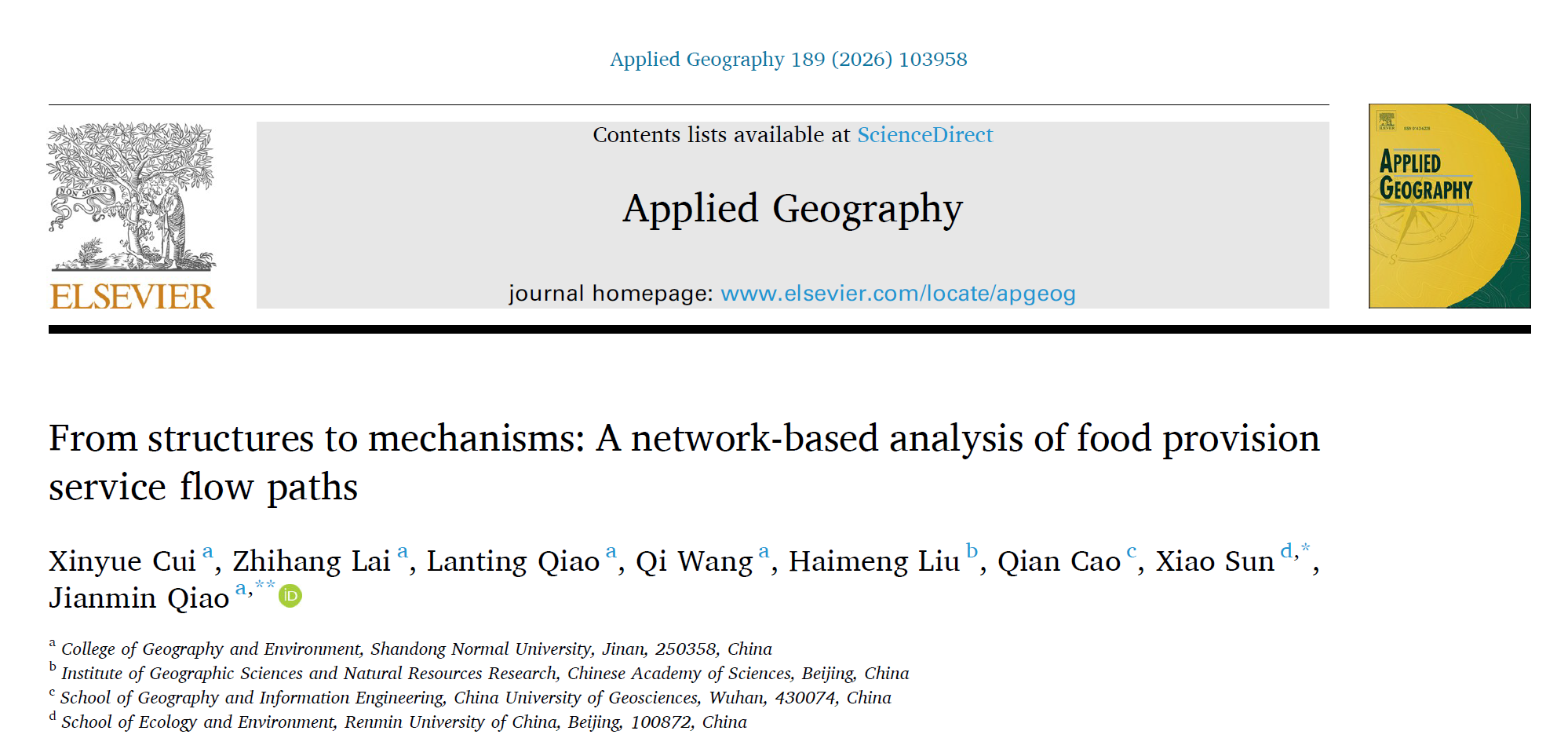近日,yl7703永利孙晓副教授作为通讯作者,与合作者的研究论文“From structures to mechanisms: A network-based analysis of food provision service flow paths” 在地球科学研究领域国际Top期刊Applied Geography发表。