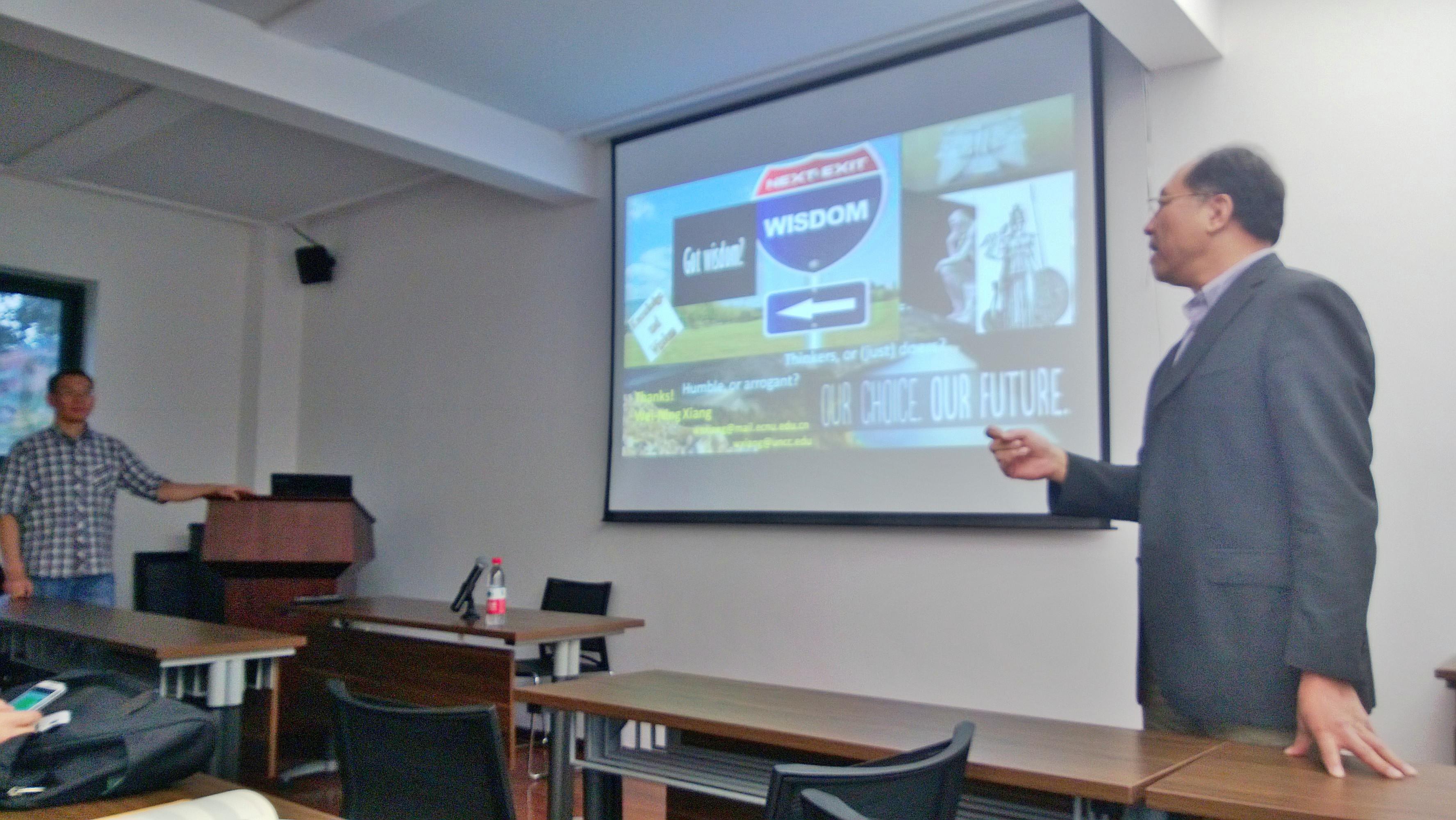 2015年11月5日上午,在人大环境公司实验楼201会议室,美国北卡罗来纳大学地理与地球科学系终身教授、华东师范大学上海市城市化生态过程与生态恢复重点实验室主任、中组部“千人计划”国家特聘教授、《Landscape and Urban Planning》主编象伟宁博士为公司师生做了题为“温故知新、转昧成智、知行合一——景观与城市规划中的智慧思维”的学术报告。